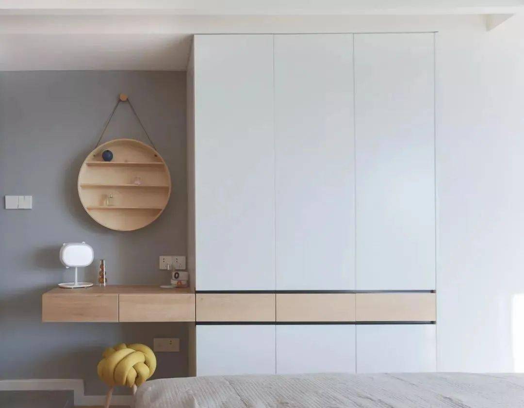 在小小的卧室空间里,组合衣柜很大的优势就在于,它不仅仅发挥了纯粹的衣物收纳功能,还可以与书桌、书架、化妆台、办公区等组合起来,有着超乎想象的实用性。